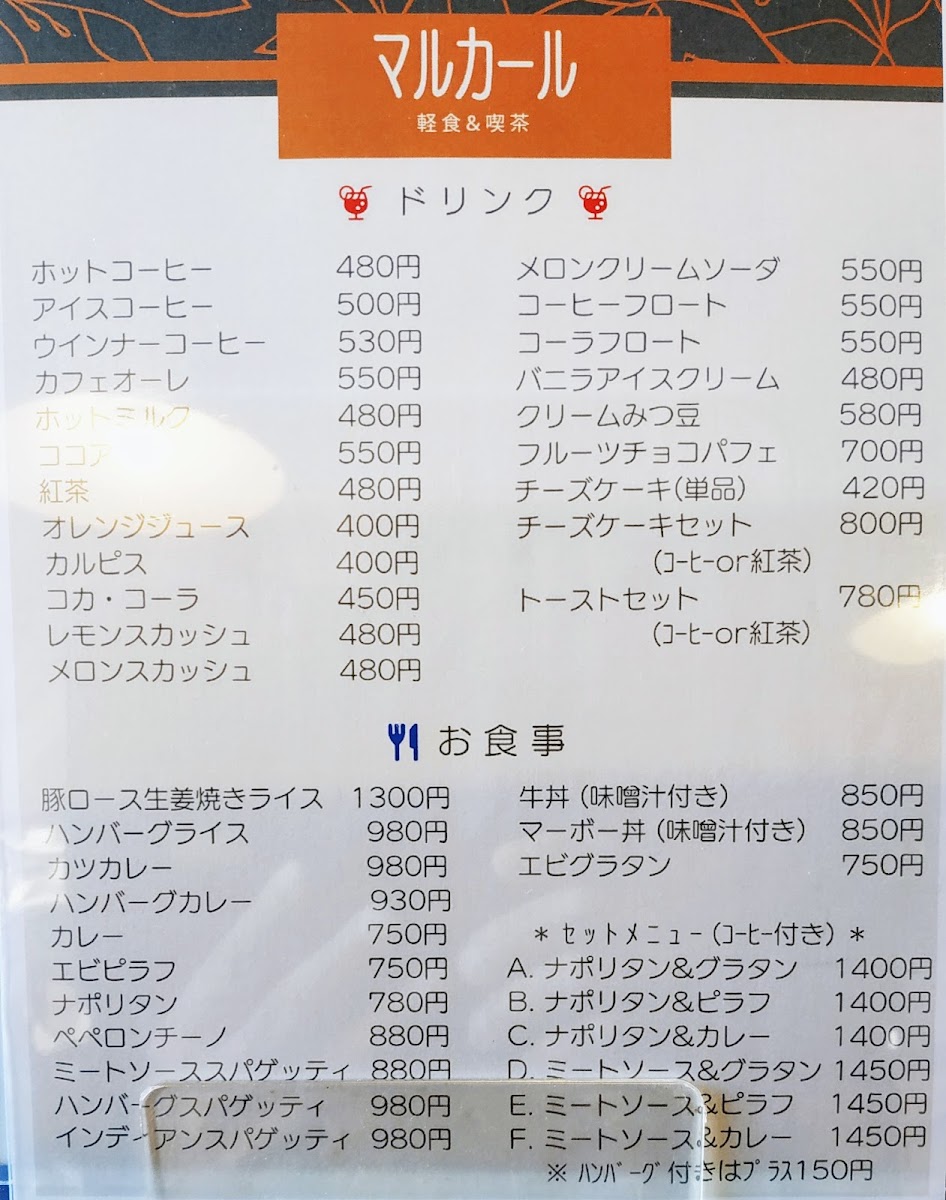 The menu at Malcarl is a delightful array of flavors. Signature dishes like the カツカレー (pork cutlet curry) strike a perfect balance between spice and sweetness, featuring tender, juicy meat in a generous serving. Patrons rave about the ナポリタン, where the fresh ingredients meld beautifully to create a nostalgic yet modern taste. Pair your meal with their aromatic アイスコーヒー for a refreshing end to your dining experience.